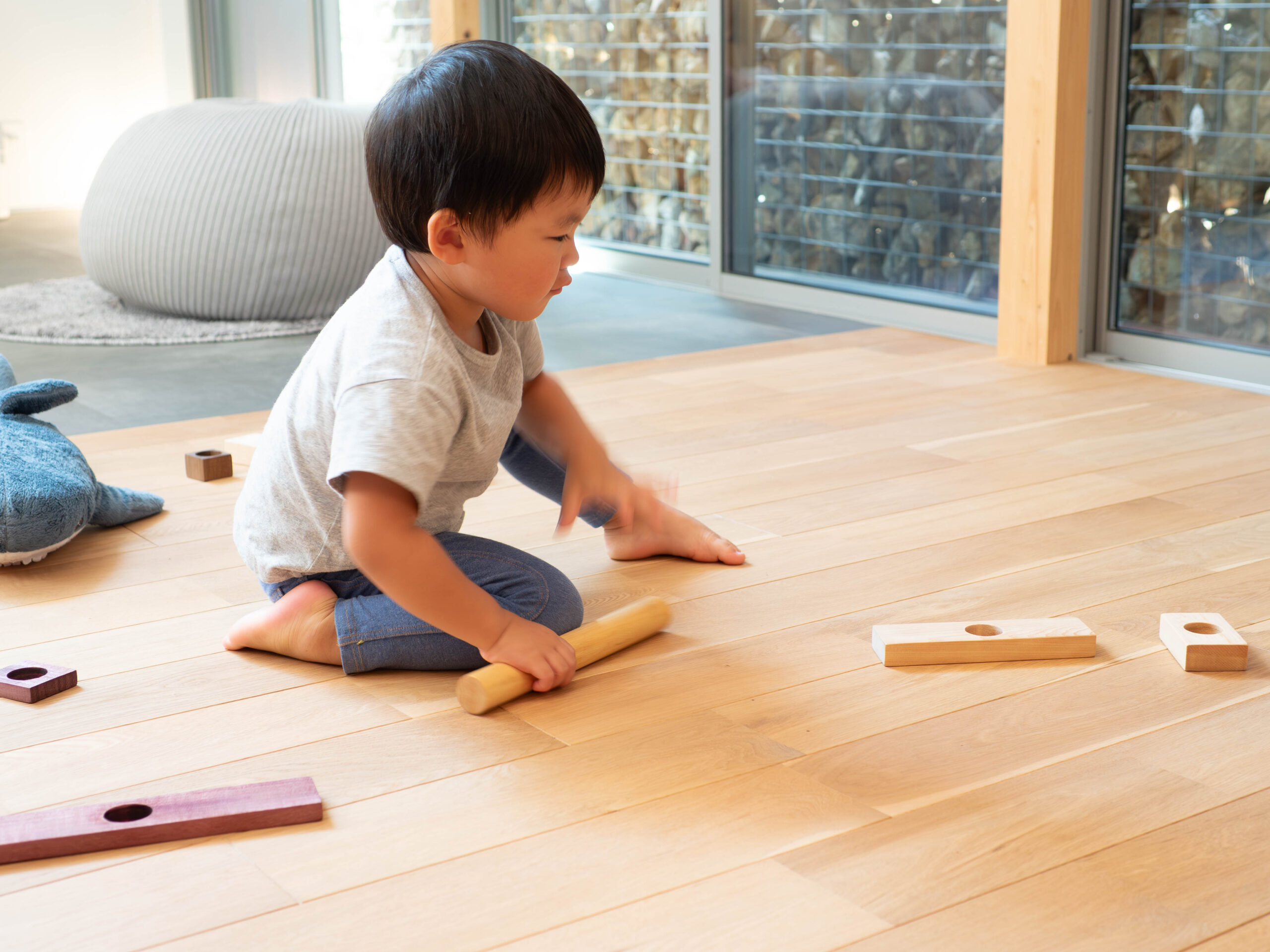 積み木を通して、親と子が言葉を交わし、笑い合い、