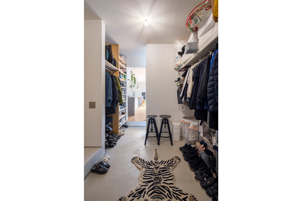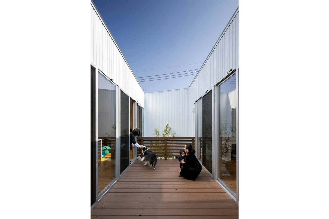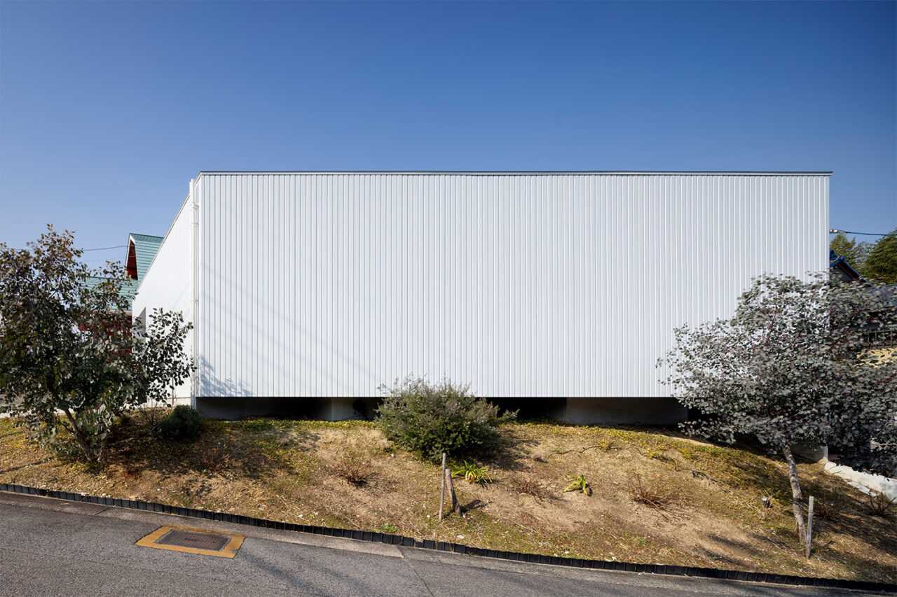 その上に載せたのは、外部に対して表情を抑えたシンプルな箱型のボリュームである。