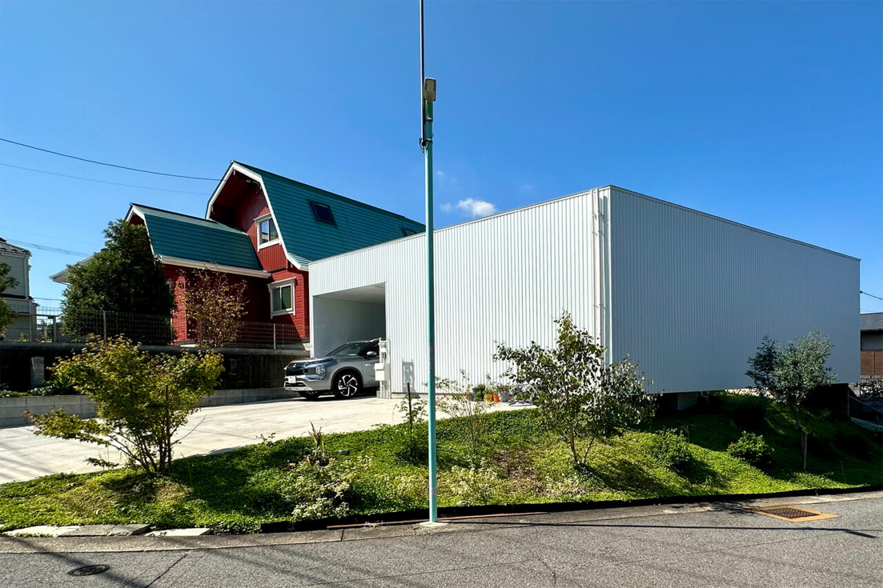 既存の土留めブロックを取り壊し、法面として整えることで造成コストを抑えつつ、地形を素直に受け入れる構成とした。