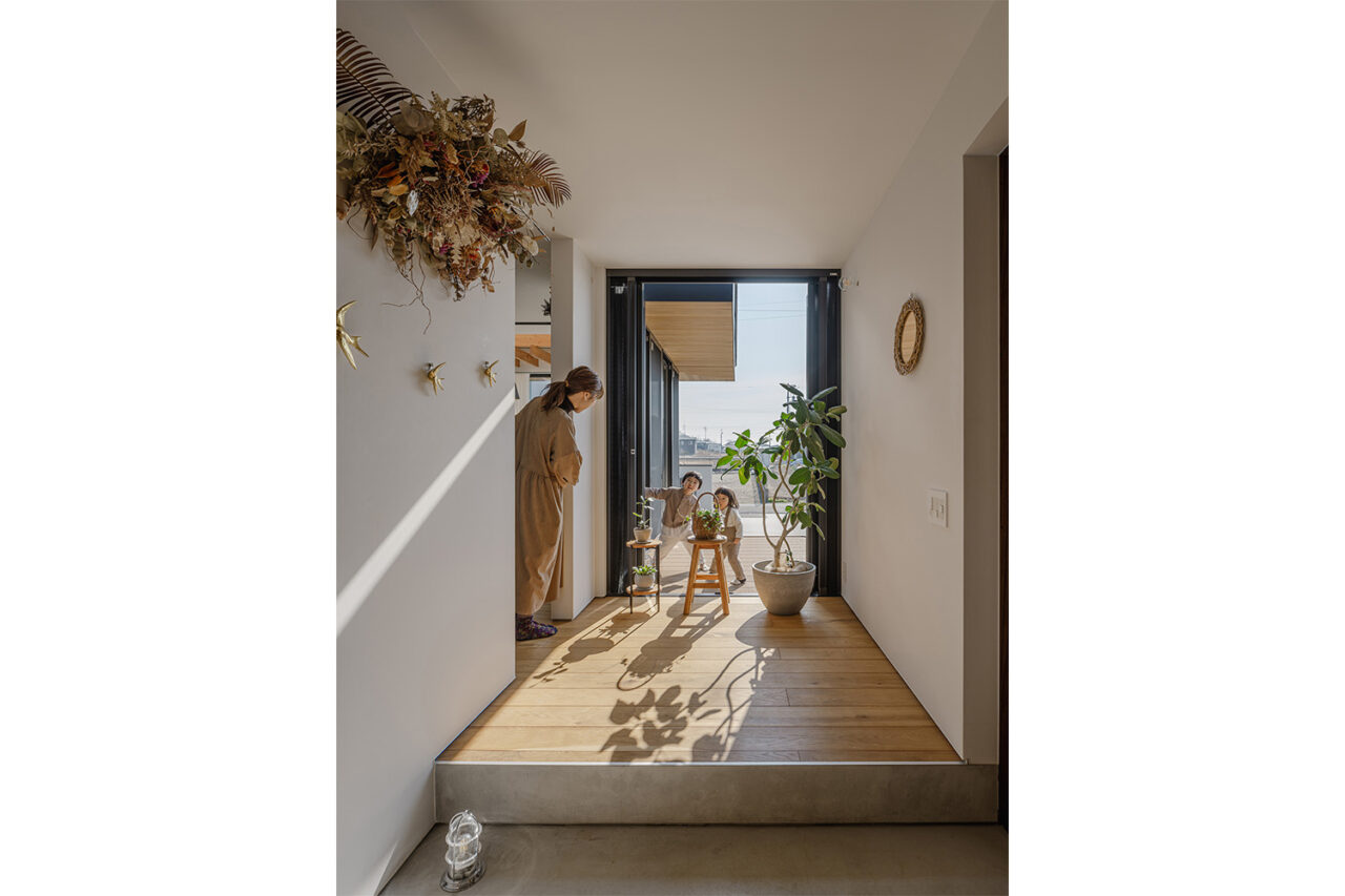 内と外に点在するひろばが、暮らしの変化を静かに受け止めていく住まいである。