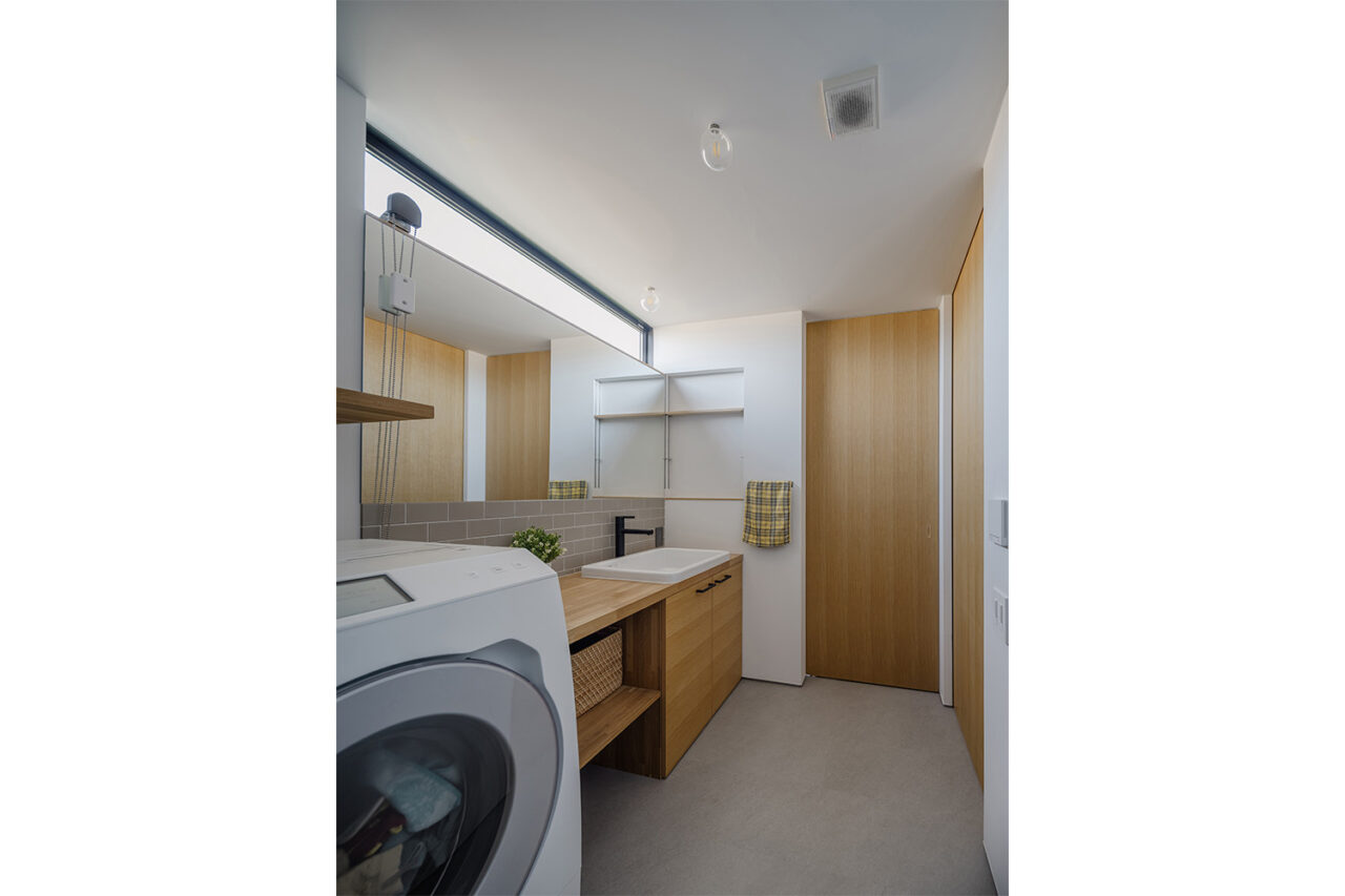 リビングと連続する階段は、動線であると同時に腰掛けられるベンチとして計画し、会話や時間を共有する装置としている。